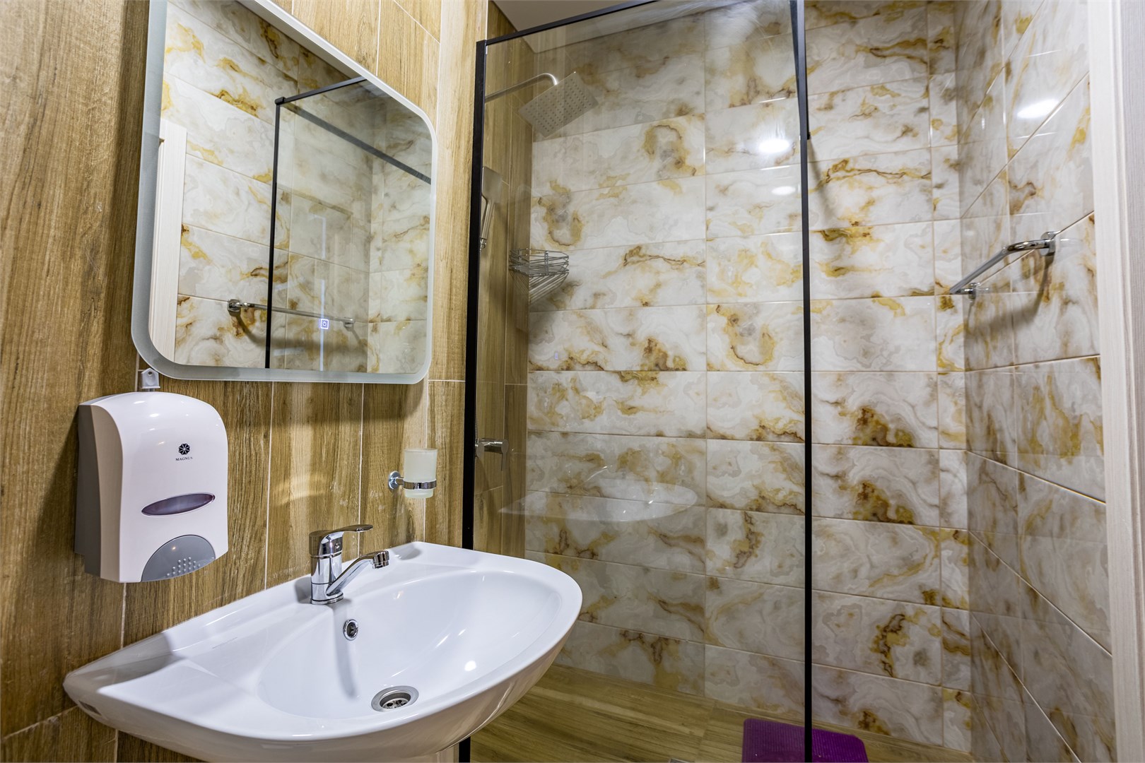- Санузел: с душевой кабиной, туалетные принадлежности, фен