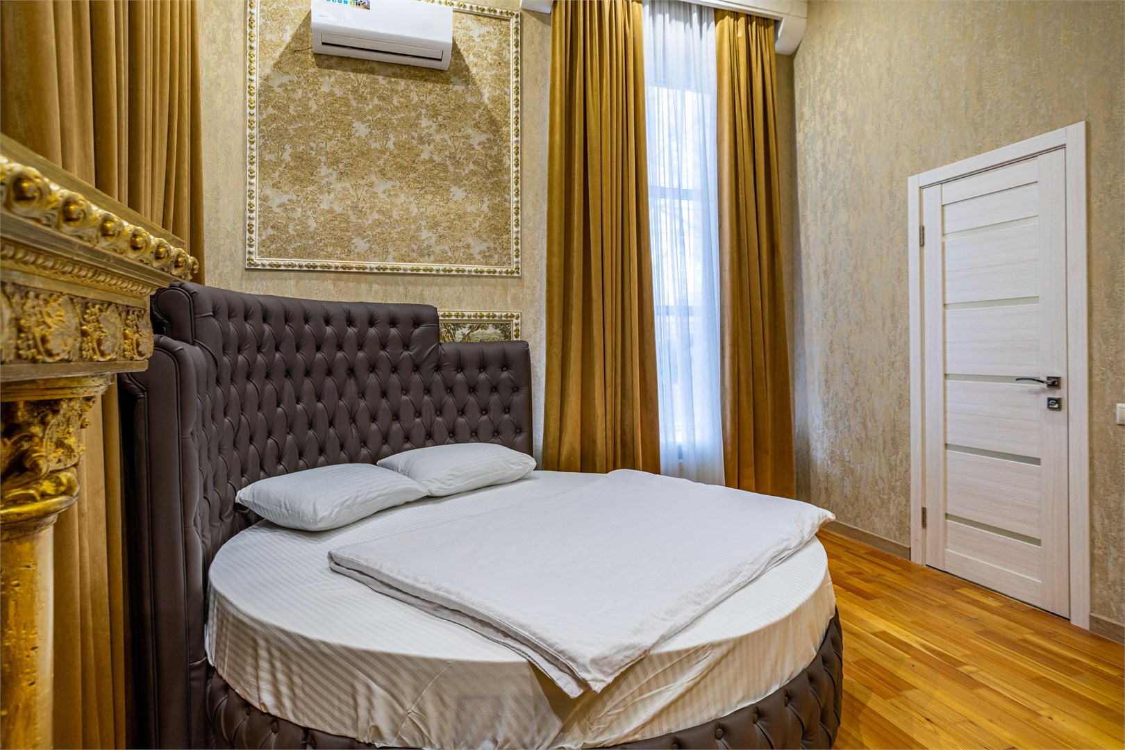 | Делюкс 2-местный с круглой кроватью | 28 кв.м. | 2 чел. | Мебель (кресла, кровать двуспальная, столик журнальный), Оборудование (кондиционер, мини-холодильник... | |